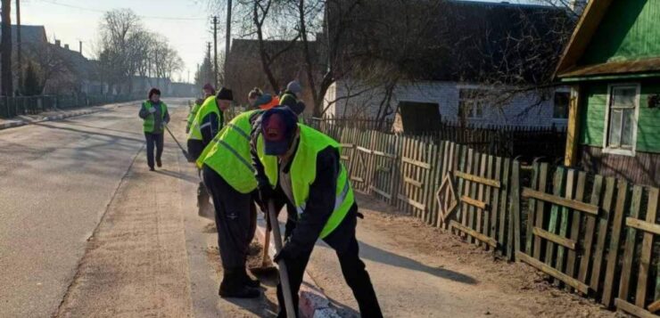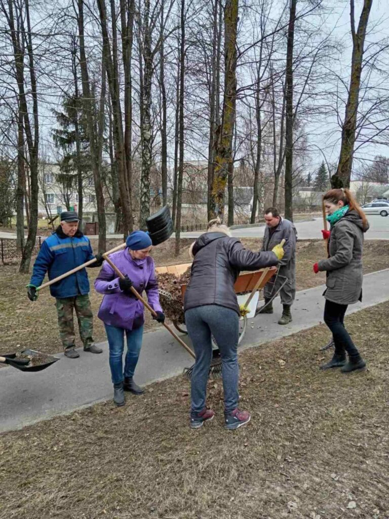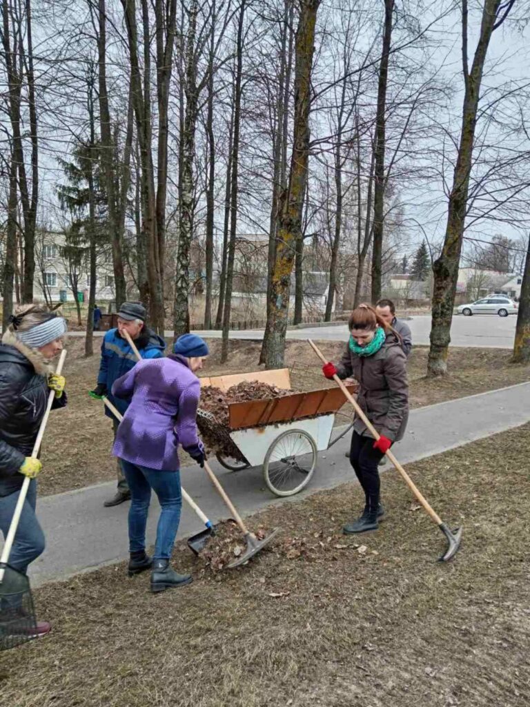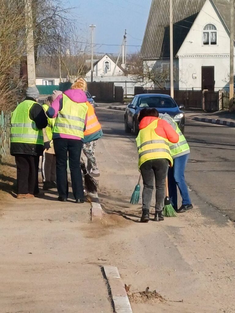 Члены первичный профсоюзной организации ГУ «Поставский ТЦСОН» традиционно на уборке улиц родного города.