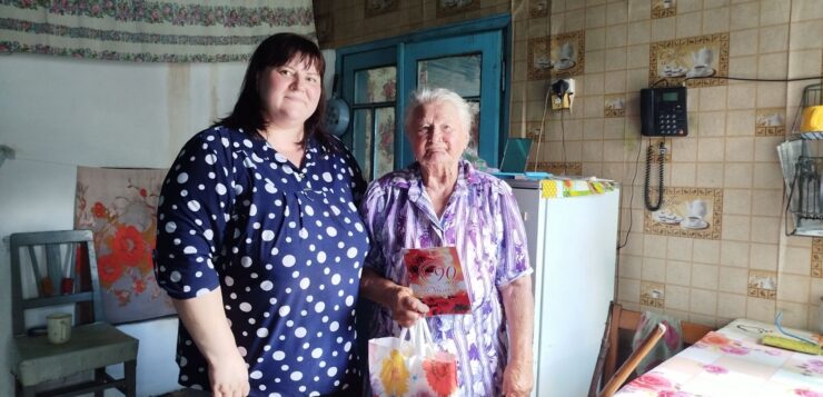 Свой 90 летний юбилей празднует Соболь Алла Демьяновна. Координатор проекта «Оказание социально-бытовой поддержки бывшим жертвам нацизма» поздравила Аллу Демьяновну с такой прекрасной датой, пожелала ей долгих лет жизни, крепкого здоровья, мирного неба над головой и вручила небольшой подарок.