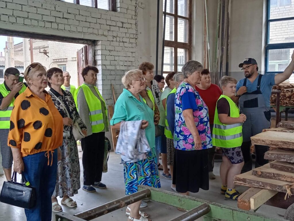 В отделении дневного пребывания для граждан пожилого возраста и инвалидов (г.п.Воропаево)🏠 в рамках Года качества🇧🇾 была организована экскурсия на ООО «Эковудсервис» (г.п. Воропаево) – бывший Воропаевский ДОК. Один из руководителей нового предприятия провёл обзорную экскурсию и рассказал📢 бывшим работникам комбината и жителям поселка о современных технологиях, новых методах работы и перспективах роста производства на предприятии. ☝️Жителям поселка было интересно как преобразился их родной комбинат, а у бывших работников появился шанс встретиться, обсудить свой опыт работы и поделиться воспоминаниями.