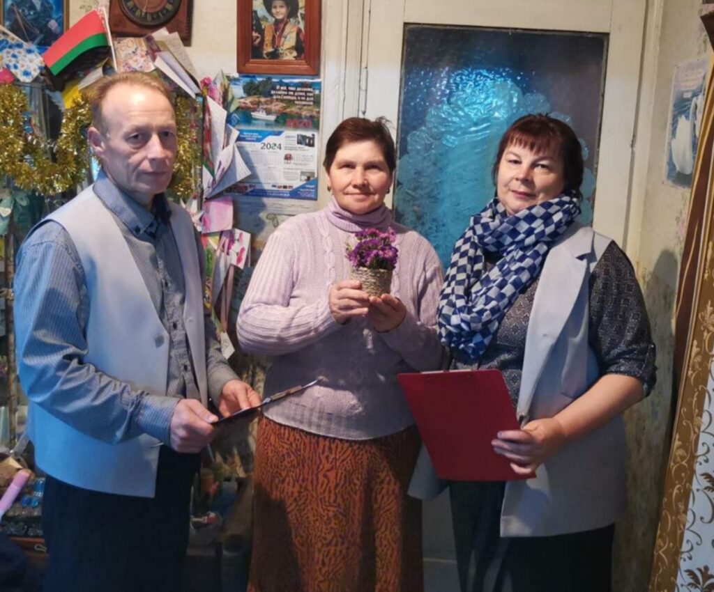 В рамках недели родительской любви☝️ сотрудники отделения дневного пребывания для граждан пожилого возраста и инвалидов (г.п.Воропаево)🏠 отправились(car) с визитом почёта к многодетным матерям – посетительницам отделения, чтобы поздравить их с Днём Матери. 💐Каждая мама получила в свой адрес тёплые пожелания и кашпо с красивыми цветами🪴.