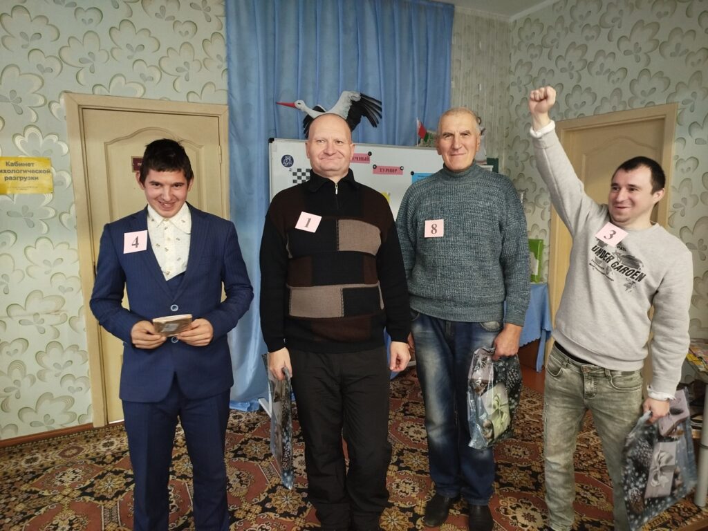 В рамках месячника «Человек с белой тростью» в отделении социальной реабилитации, абилитации инвалидов прошёл «Шашечный турнир». За победу боролись восемь участников, а остальные ребята активно поддерживали друзей. Турнир проходил в семь этапов, победителем стал Шорец Николай. В завершение турнира победители получили памятные подарки, а зрители массу положительных эмоций!