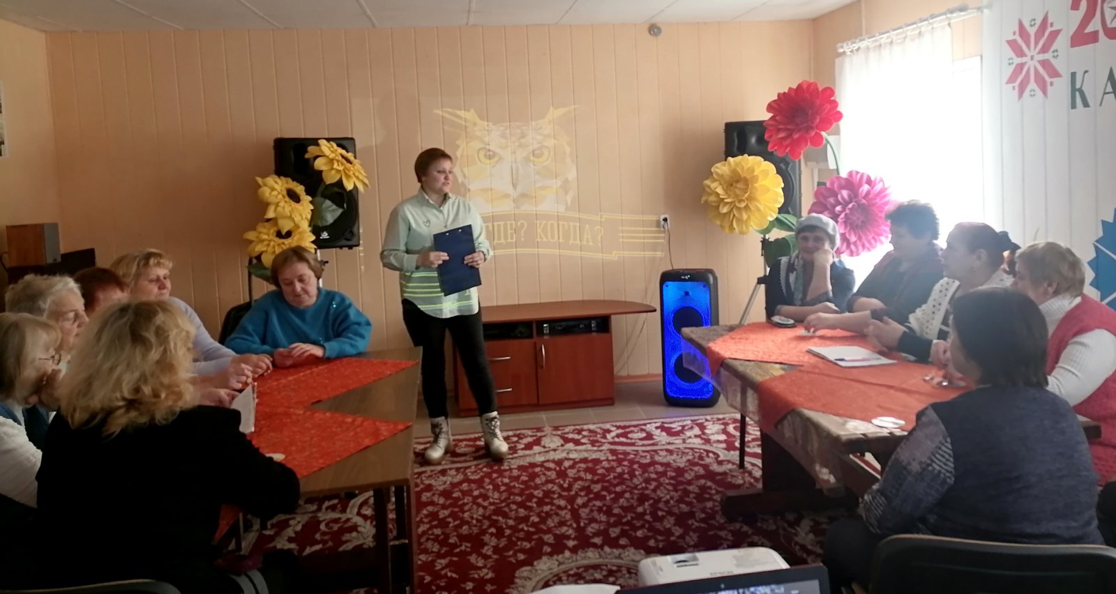 Между посетителями отделения дневного пребывания для граждан пожилого возраста (г.п.Лынтупы) прошла увлекательная интеллектуальная игра «Что?Где?Когда?»🦉. Посетители разделились на две команды и демонстрировали свои знания в самых различных областях.