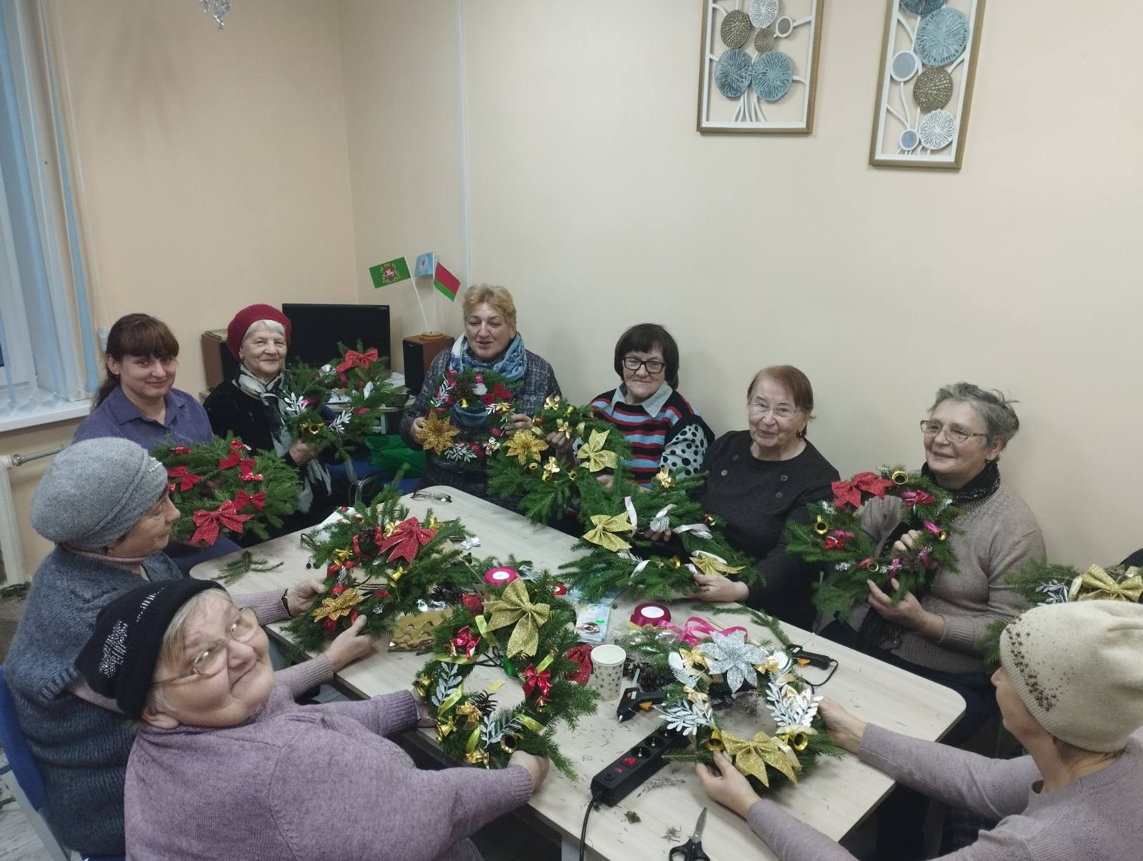 🎄Сегодня для посетителей пункта прошёл мастер-класс по изготовлению рождественских венков, под руководством волонтёра Адамович Натальи Михайловны.