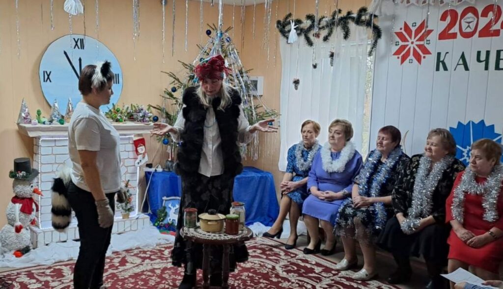 ✨Новогоднюю благотворительную акцию «От всей души»❤️ в отделении дневного пребывания для граждан пожилого возраста (г.п.Лынтупы) открыл голубой огонёк🎆 для ветеранов труда «Навстречу чудесам». 💫Главными героями представления стали ведьма Солоха и её сестрица Баба Яга. Не забыли всех присутствующих поздравить с наступающим Новым годом Дед Мороз 🎅 со Снегурочкой. 🎆Огонёк был украшен новогодними песнями вокальной группы «Активное поколение», юмористическими выступлениями посетителей отделения, зажигательными играми и танцами.