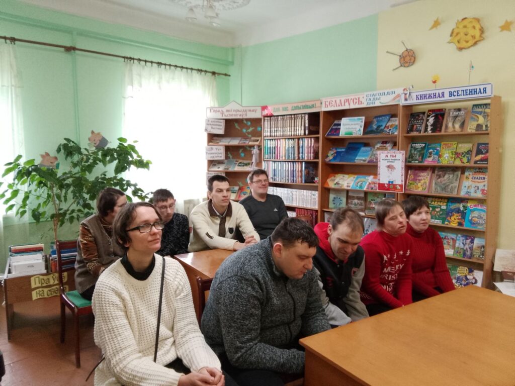 У рамках сацыяльнага праекту “Бібліятэрапія” наведвальнікаў аддзялення сацыяльнай рэабілітацыі, абілітацыі інвалідаў запрасілі на літаратурна-гульнёвую гадзіну “Родная мова, цудоўная мова” ў дзіцячую бібліятэку імя У. Дубоўкі. Семянас Людміла Францаўна пазнаёміла прысутных з гісторыяй роднай мовы, традыцыйнымі народнымі святамі, загадала цікавыя беларускія загадкі, а таксама правяла беларускія народныя гульні. Час праляцеў вельмі хутка. Галоўнае, што Людміле Францаўне ўдалося стварыць інклюзіўную і камфортную атмасферу, улічваючы асаблівасці ўспрыняцця матэрыялу і магчымасці кожнага ўдзельніка.