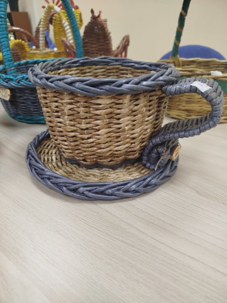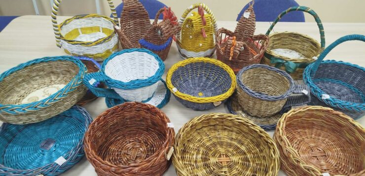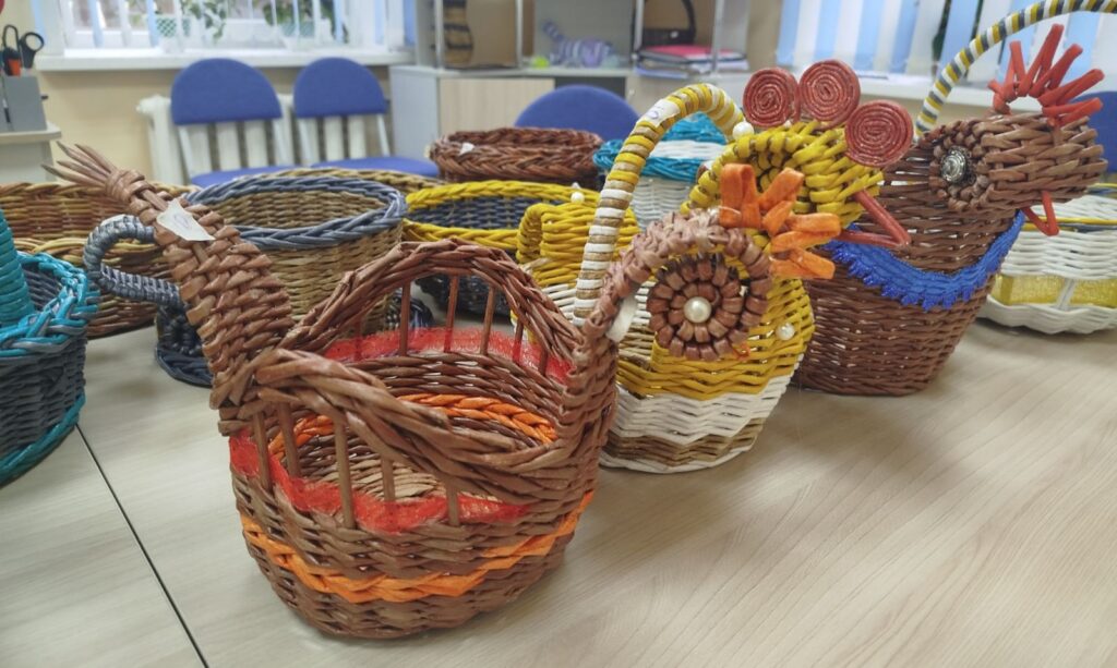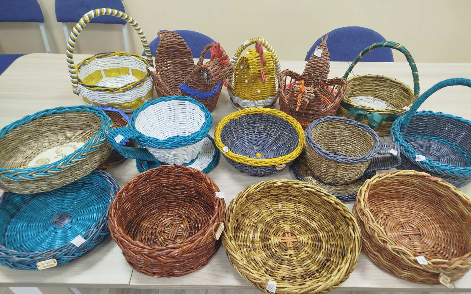 Одна из посетительниц стационарного социального пункта в аг.Камаи Поставского ТЦСОН менее чем за пол года приобрела навыки по плетению карзин, хлебниц и другого декора.