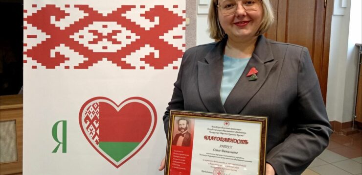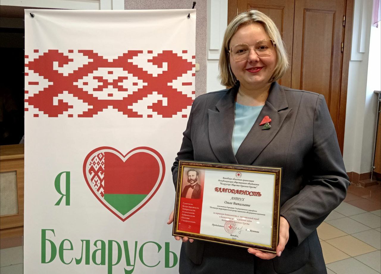 Заслуженная Благодарность председателя Витебской областной организации республиканского общественного объединения «Белорусское общество Красного Креста» — директору Поставского ТЦСОН Ольге Антух.