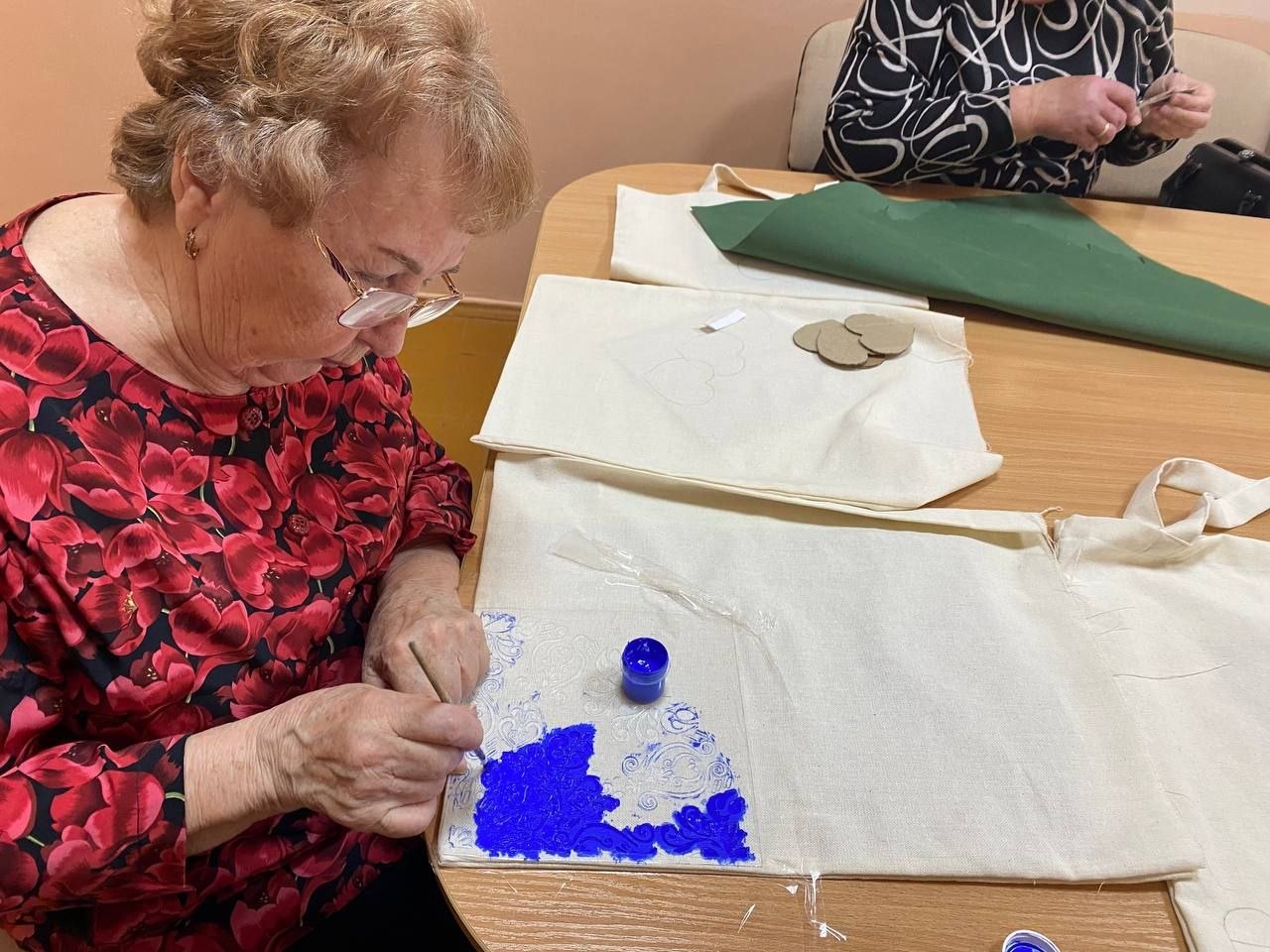 В отделении дневного пребывания для граждан пожилого возраста и инвалидов (г. Поставы) завершился цикл занятий по художественной росписи шоперов.